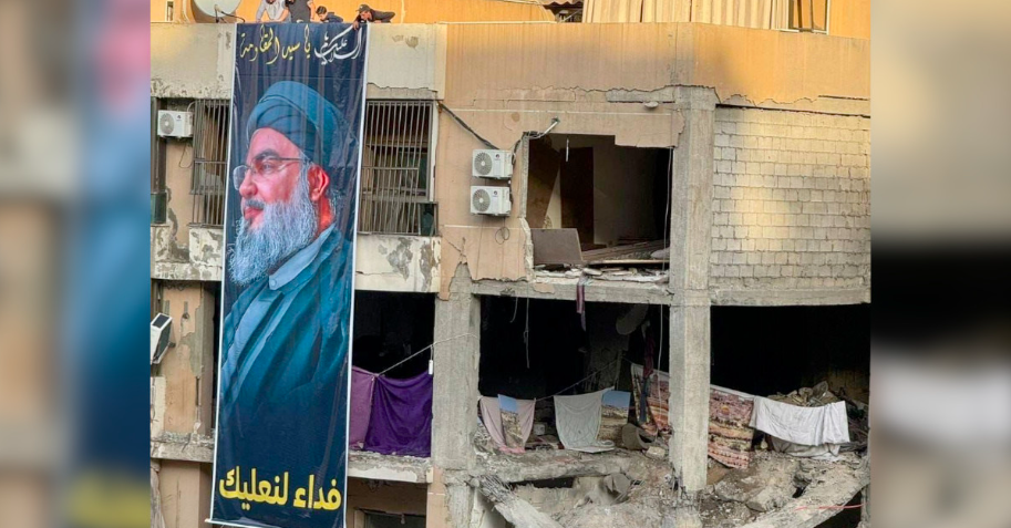 Aruri ve diğer altı kişinin öldürüldüğü bina üzerine asılan dev Hasan Nasrallah pankartının üzerinde, "Ayakkabılarına feda olsun ey direnişin efendisi" anlamına gelen Arapça sözler yer aldı.