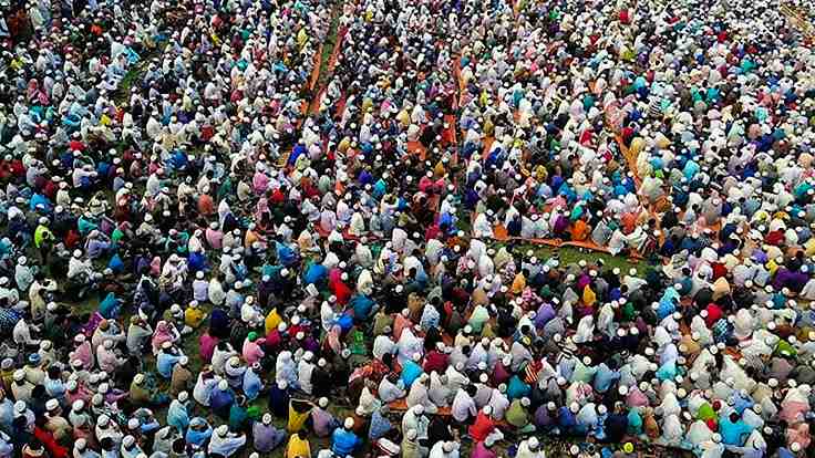 Coronavirüs salgınına karşı tedbir olarak evde kalma ve kalabalıktan uzak durma çağrısı yapılırken, Müslüman nüfusun büyük çoğunlukta olduğu Bangladeş’in güneyindeki Raipur kasabasında yaklaşık on binlerce kişi ülkeyi virüsten temizleyeceği gerekçesiyle Kuran’daki şifa dualarını okumak üzere açık bir alanda toplandı.
