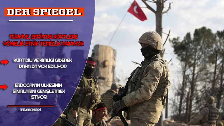 PeyamaKurd - Almanya’nın önde gelen haber dergilerinden biri olan Der Spiegel, Türkiye ve desteklediği çete grupların işgali altındaki Efrîn’e ilişkin bir haber-analize yer verdi. Dergi, Efrîn’de etnik ve kültürel temizlik yapıldığına vurgu yaptı. Bununla birlikte, bölgenin Kürt dili ve kimliği giderek daha da yok ediliyor dendi.