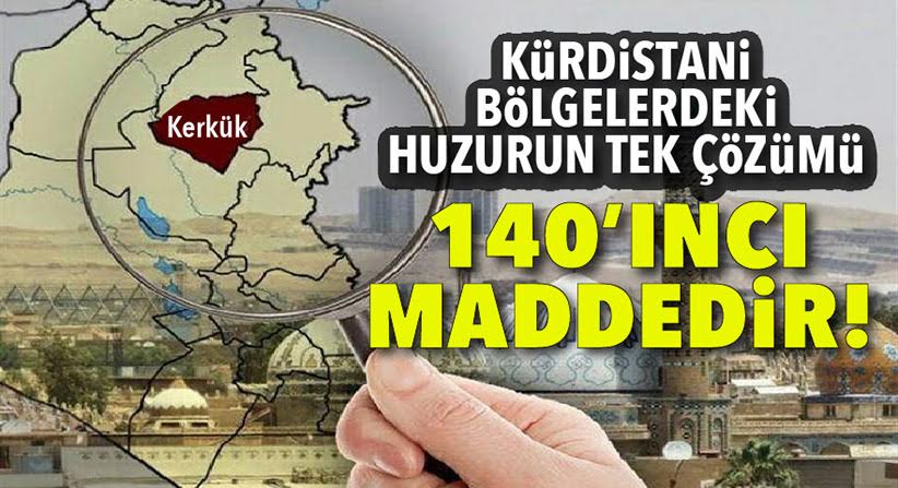 Dolayısıyla bölgenin huzur ve refahı için Irak Anayasının 140. Maddesinin uygulanması tek çözümdür. 2005 yılında hazırlanan Irak anayasasına göre Kürdistan Hükümetinin yönetimi dışında kalan yerlerde (Musul, Kerkük, Diyala) bölgenin demografisi Saddam döneminin tehcir ve uygulamalarından önceki pozisyonuna getirilecek ve 2007 Aralık ayına kadar bir referandum yapılacaktı. Bu referandum sonunda da halkın çoğunluğunun kararıyla bölgeler Irak Hükümetinin veya Kürdistan Hükümetinin yönetimine katılacaktı.