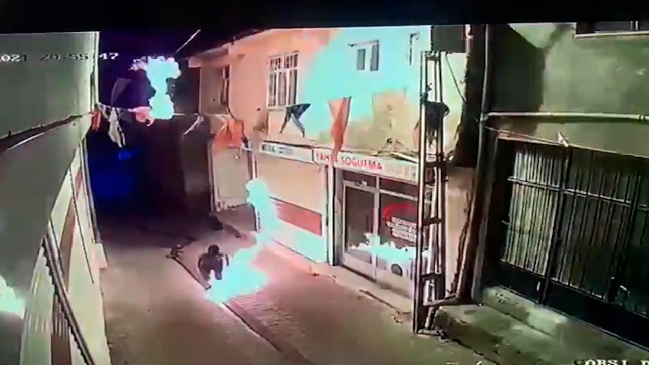 Görüntülerde yüzü açık bir saldırganın önüne geldiği AKP binasına elindeki molotof kokteylini attıktan sonra hızla uzaklaştığı görülüyor.