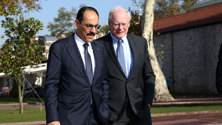 PeyamaKurd - Türkiye Cumhurbaşkanlığı Sözcüsü İbrahim Kalın, ABD'nin Suriye Özel Temsilcisi Jeffrey ile görüştü. Yaklaşık 1,5 saat süren görüşmede İdlib başta olmak üzere Suriye krizi, siyasi süreç, Anayasa Komitesinin çalışmaları, terörle mücadele, mülteciler, bölgesel meseleler ile ikili ilişkiler masaya yatırıldı.
