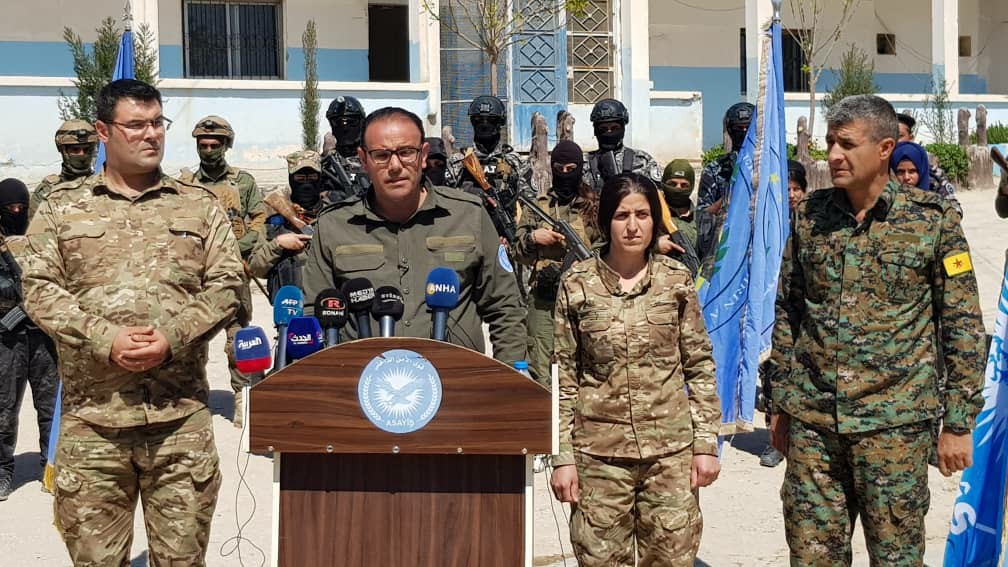 Açıklamada, Demokratik Suriye Güçleri (HSD) Genel Sözcüsü Gabriel Kino, Halk Savunma Birlikleri (YPG) Genel Sözcüsü Nuri Mehmud ve Cizre Bölgesi Meclisi Genel Komutanlık Üyesi Ewinar Derîk de hazır bulundu.