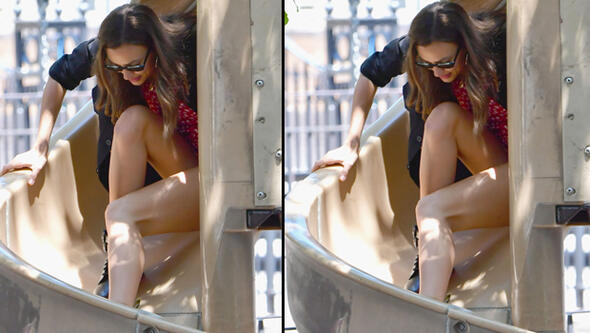 Shayk, bir ara kızıyla oynarken çocuklar için yapılan kaydıraktan aşağı kaymaya çalıştı. O sırada da uzun bacakları yüzünden sıkıştı.