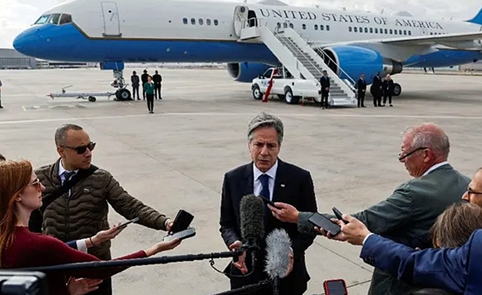 Blinken, îro seredana serokwezîrê Îsraîlê Benyamin Netenyahu û seredana wezîrê karên derve yê Îsraîlê kiribû.