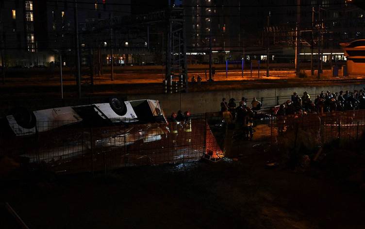 Otobus ji 15 mt bilindahiyê dikeve ser rêya hesin û agir pê dikeve. Di qezayê de 21 kes mirine û 12 kes birîndar bûne. 4 an 5 kes jî wenda ne.