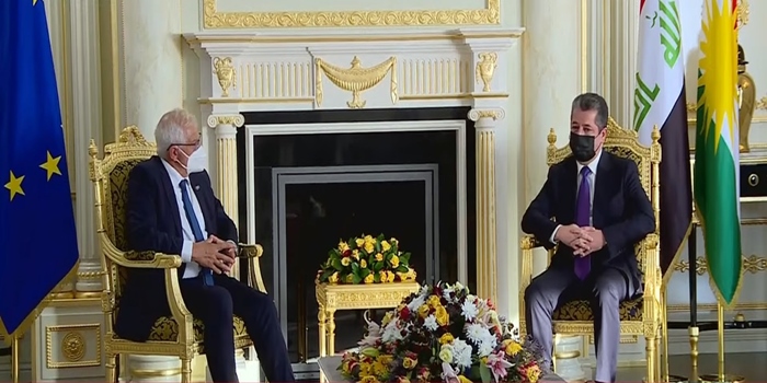 PeyamaKurd - Serokwezîrê Herêma Kurdistanê Mesrûr Barzanî, îro Sêşemê pêşwazî li Berpirsê Siyaseta Derve ya Yekîtiya Ewropa (YE) Josep Borrell û şanda bilind a YE ya ligel wî kir.