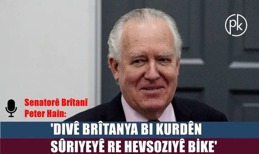 PeyamaKurd - Senatorê Brîtanyayî Peter Hain li ser çareserkirina pirsgirêka Kurd li Tirkiyeyê, rewşa Rojavayê Kurdistanê û mafên Kurdan bi giştî got, "Ewlehiya Kurdan ji bo me girîng e, pêwîst e li Tirkiye, Îran, Iraq, Sûriye û her cihî mafên gelên Kurd bên parastin." Hain ji bo Kurdên Tirkiyê jî got, "Ez dixwazim Erdogan rêzê li mafên Kurdan bigire, ev hîn çênebûye".