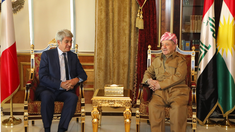 PeyamaKurd - Serok Mesûd Barzanî îro li Pîrmamê pêşwazî li balyozê Fransa li Iraqê, Bruno Aubert û şanda pê re kir û di hevdîtinê de, fikar û nîgeraniya xwe li hember rewşa kurdan li Sûriyê nîşan da.