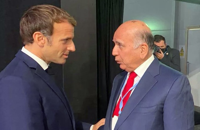 PeyamaKurd - Wezîrê Derve yê Iraqê Fuad Husên û Serokomarê Fransayê Emmanuel Macron li konferansa Glasgow a Keşûhewayê hevdîtinek pêk anîn.