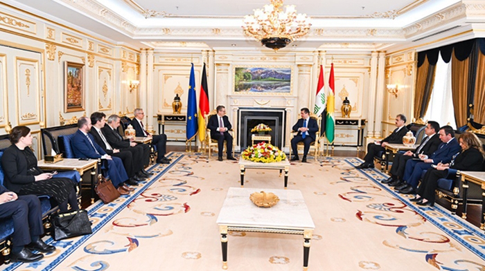 PeyamaKurd - Serokwezîrê Kurdistanê Mesrûr Barzanî îro 26ê Çile li Hewlêrê pêşwazî li Wezîrê Dewletê di Wezareta Derve ya Almanya de Tobias Lindner û şanda ligel wî kir û çend mijarên girîng di civînê de hatin gotûbêjkirin.