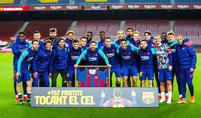 Messi beriya destpêkirina yarîya li hember Valladolid bi malbata xwe û lîstikvanan re wêneyên bîranînê bi kirasê dîrokî girtin.