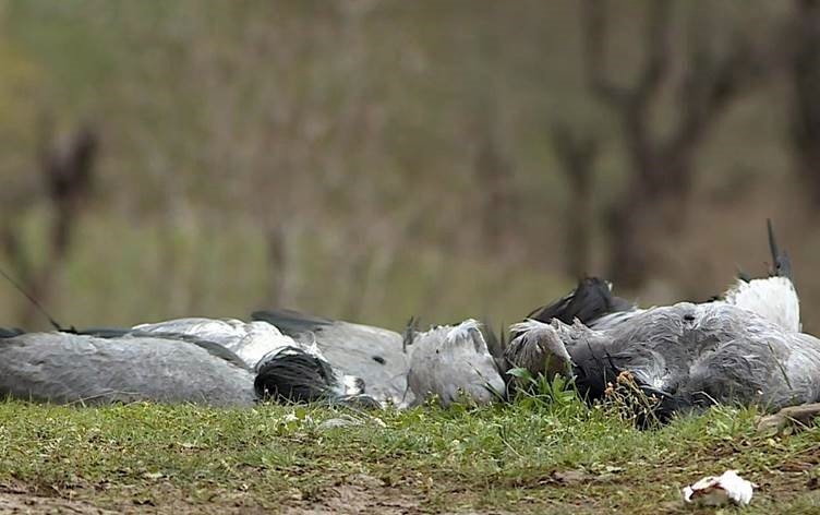 Hejmara balindeyan zêdetirî 150 qaz û quling in ku li rûbereke berfireh bi tak û komel ketine xwarê.