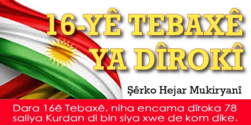 PeyamaKurd - Helwesta Barzanî û PDKê her çi be, her guhertinek jî di asoya pêşeroja Kurdan de hebe, dîsa jî sernivîsa herî giring ji bo tomara têkoşîna Kurdayetîyê, tevî hemî serkeftin û şikestinan, piştî têkçûna Komara Kurdistanê ya 1946an, li gor baweriya min, niha jî her di bin sernivîsa 16ê Tebaxê de kom dibe.