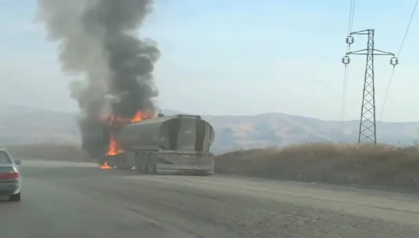 تانكەرێك لەسەر رێگای رۆڤیا ئاگریگرت و شۆفێرەكەی گیانیلەدەستدا.