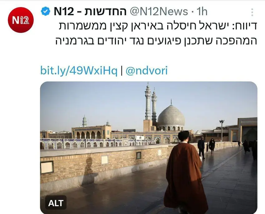 کەناڵی ١٢ی ئیسرائیلی بڵاویکردووەتەوە ، مووساد یەکێک لە ئەندامەكانی سوپای پاسدارانی لە ناوخۆێ ئێران تێرۆر کردووە و كوشتوویەتی .