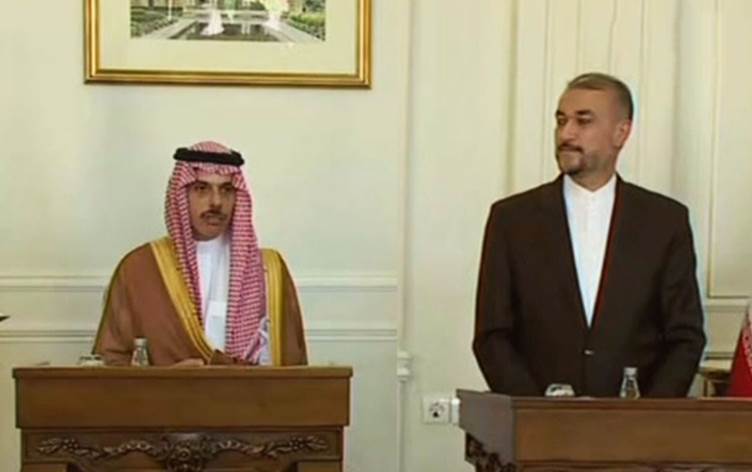 حسێن ئەمیر عەبدۆڵڵاهیان، وەزیری دەرەوەی ئێران لەگەڵ شازادە فەیسەڵ بن فەرحان، وەزیری دەرەوەی عەرەبستان لە تاران کۆبووەوە. کۆبوونەوەکە دوای ٧ ساڵ بوو و بۆ یەکەمین کۆبوونەوەی ئاستی وەزاری لە تاران زۆر گرینگە. دیداری دوو وەزیر لە وەزارەتی دەرەوەی ئێران بەڕێوەچوو. دوای بەخێرهاتنی وەزیری عەرەبستان ، کۆبوونەوەی دووقۆڵییان ئەنجامدا و هەر وەزیرێک لەبەردەم ڕۆژنامەوانیدا دەرکەوت.