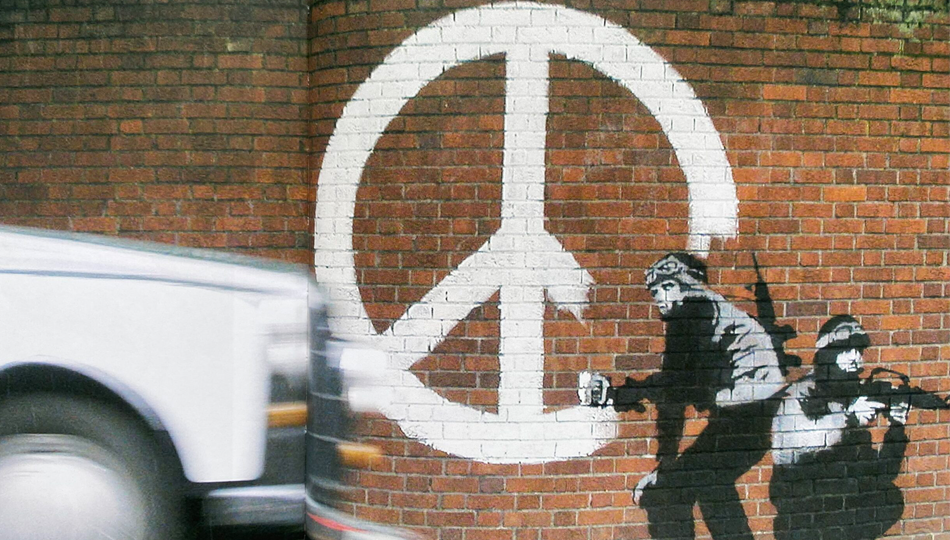 بانکسی بۆ یەکەمین جار تابلۆی «CND Soldiers» ی لە ساڵی 2003دا وەک ناڕەزایەتییەک دژ بە جەنگی عێراق، لەسەر دیوارێک نزیکی پەرلەمانی بەریتانیا کێشا و هەرایەکی گەورەی نایەوە.