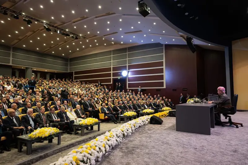 لە ووتارێکدا سەرۆک بارزانی خۆشحاڵی خۆی بە کۆبوونەوەکە دەربڕی و ڕایگەیاند: کە باسی هەولێر دەکرێت واتا باسی مێژووی چەند هەزار ساڵەی ئەم ووڵاتە دەکرێت و ئەمڕۆ هەولێر پایتەختە و جێگە و پەناگەی هەمووی لێقەوماوێک و هەموو ئازادیخوازێکە.