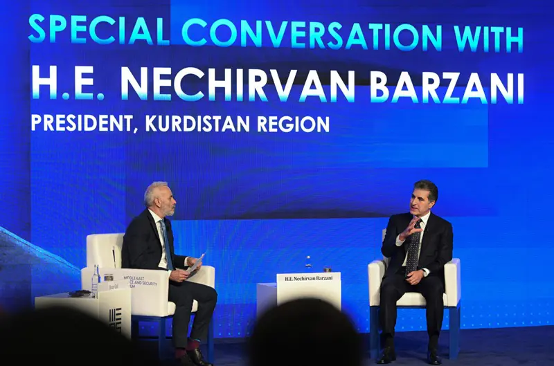 سێشەممە ٢٠٢٥/١١/١٨ نێچیرڤان بارزانی سهرۆكی ھەرێمی کوردستان بەشداری لە کۆڕبەندی ئاشتی و ئاسایشی ڕۆژھەڵاتی ناوەڕاست دا کرد کە ساڵانە لەلایەن زانکۆی ئەمریکی کوردستان ەوە لە دھۆک ئەنجام دەدرێت.