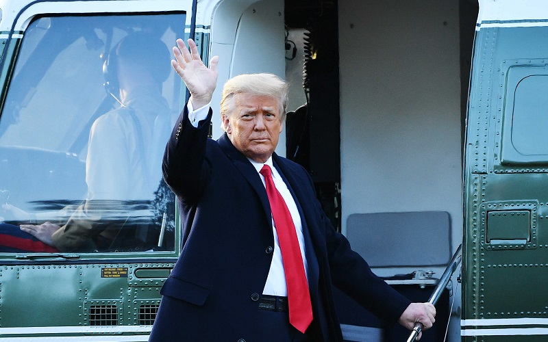 بە پێی ڕاپۆرتێک لە میدیاکانی عەرەب زمانەوە ، دۆناڵد ترامپ ٤٥ ەمین سەرۆککۆماری مێژووی ئەمریکا ئێوارەی ئەمڕۆ چوارشەممە هاوکات لەگەڵ هاوسەرەکەی مێلانیا ترامپ سوار لە فڕۆکەیەکی تایبەتی سەرۆککۆمارییەوە کە لە شوێنی باشووری کۆشکی سپی یەوە هاتبووە خوارەوە و بۆ دواهەمین جار لە مەنسەبەکەی ئێستای خۆیدا ئەم کۆشکەی بەجێ هێشت .