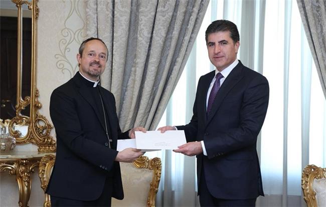 پەیامی کورد ... نێچیرڤان بارزانى سەرۆکی هەرێمی کوردستان نامهیهكى له پاپاى ڤاتیكانهوه پێدهگات