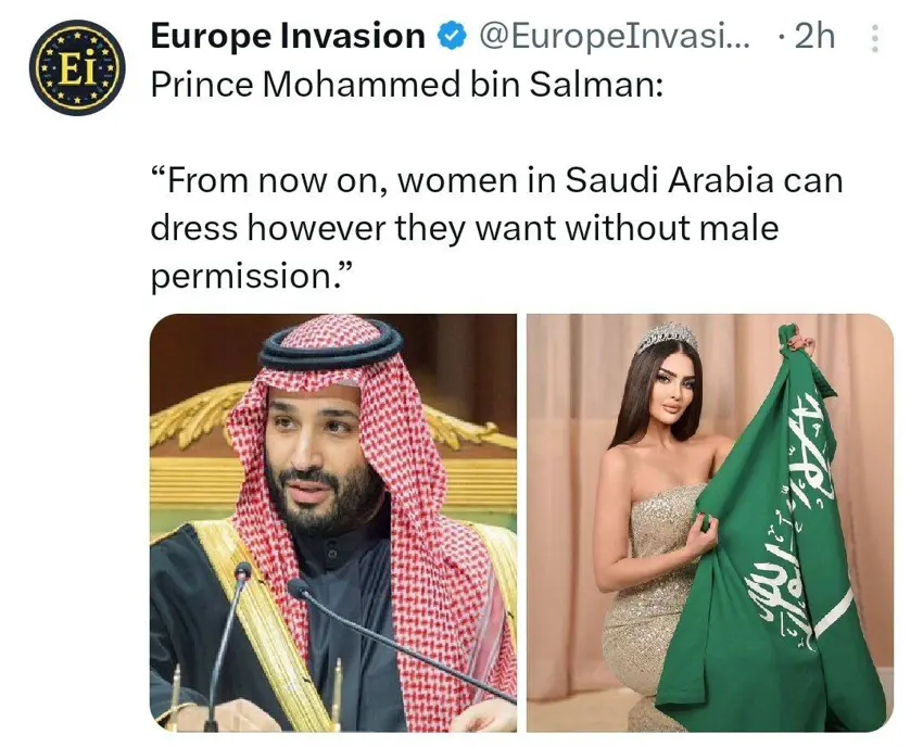 بن سەلمان فەرمانی دا کە هەموو ئافرەتێک دەتوانێت بە هەر جۆرە جل وبەرگێکەوە بچێتە دەرەوە کە بیەوێت، تەنانەت بەبێ مووڵەتی هاوسەرەکەی.