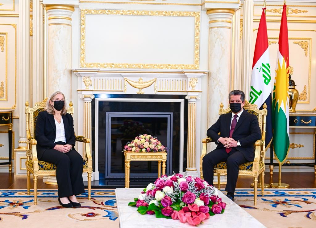 مەسروور بارزانی سەرۆکی حکوومەتی هەرێمی کوردستان پێشوازی لە باڵیۆزی نوێی ئەمریکا لە عێراق دەکات
