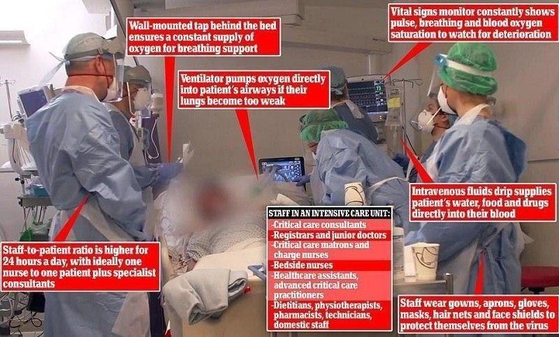 ڕۆژنامەی دەیمی مەیلی بەریتانی بە بڵاوکردنەوەی وێنەی ژۆری تایبەت " ICU " کە بۆریس جۆنسۆن ی سەرۆکوەزیرانی بەریتانیا تێدا لە بن چاودێری چڕێ پزیشکانە نیشان دەدات نووسی : پزیشکان هەرە پلە بەرز ، کەل و پەلی زۆر پێشکەوتوو بە تەکنۆڵۆژیای زۆر باڵا و هەروەها پێشکەوتووترین شێوازەکانی پزیشکی بۆ هاوکاری و یارمەتی باشتر بوونی باری تەندرووستی بۆرۆیس جۆنسۆن خراونەتە گەڕ