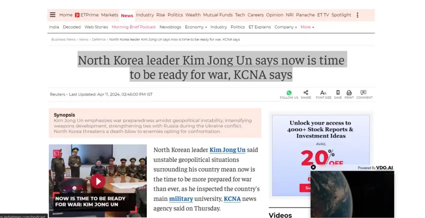 کیم جوونگ ئوون لە میانی بهسهركردنهوهی زانکۆی سەربازی سەرەکی ووڵاتەکەیدا كه بهناوی باوكییهوه نراوه (لە ساڵی 2011 کۆچی دوایی کردوە)، رایگهیاند، بارودۆخی ناجێگیری ژێئۆپۆلەتیکی دەورووبەری ووڵاتەکەی بەو مانایەیە کە کاتی ئەوە هاتووە زیاتر لە جاران ئامادەکاری بۆ شەڕ بکات.